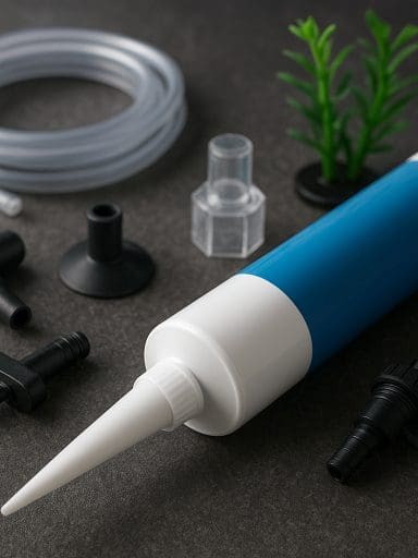 • Dozownik do tabletek — małe urządzenie montowane na szkle lub umieszczane na krawędzi akwarium, które trzyma tabletkę i chroni ją przed rozdrabnianiem przez filtr.