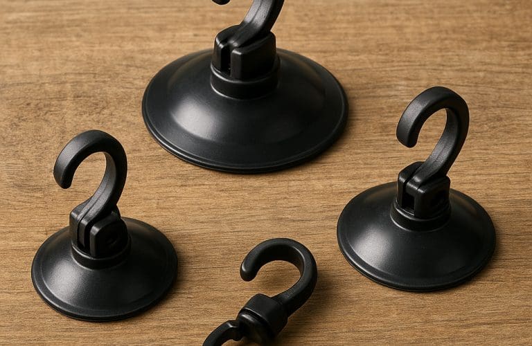 Różnice w kształcie (płaskie, stożkowe, z haczykiem) wpływają na siłę trzymania i łatwość montażu. Przy mocowaniu większych lub cięższych akcesoriów wybieraj przyssawki z większą średnicą i materiałami odporności na odkształcenia.
