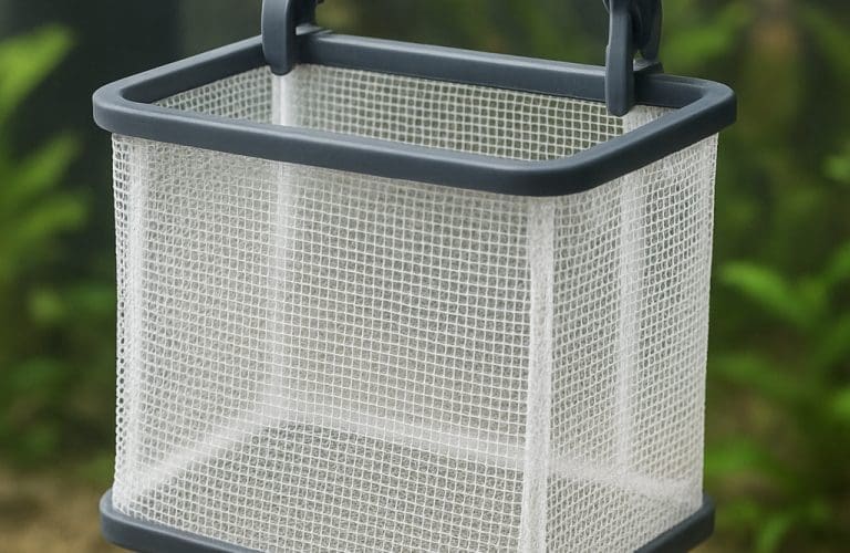 - Koszyczki i pojemniki z siatki – samodzielne pudełka z siatkową ścianką; umożliwiają łatwe wyjmowanie całej grupy narybku.
