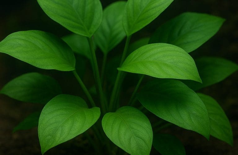 - pH: 6,0–7,8 — Anubias frazeri toleruje szeroki zakres, ale najlepiej rośnie przy pH 6,5–7,5.