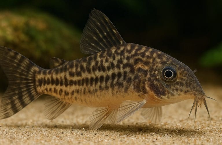Ubarwienie bywa subtelne, z delikatnymi plamkami lub rysunkiem na bokach ciała, co sprawia, że ryba doskonale prezentuje się w naturalnie urządzonym akwarium. Wąsy (barbelki) oraz pancerz wymagają odpowiedniej pielęgnacji środowiskowej — dlatego tak istotne jest stosowanie miękkiego, drobnoziarnistego podłoża oraz czystej wody.